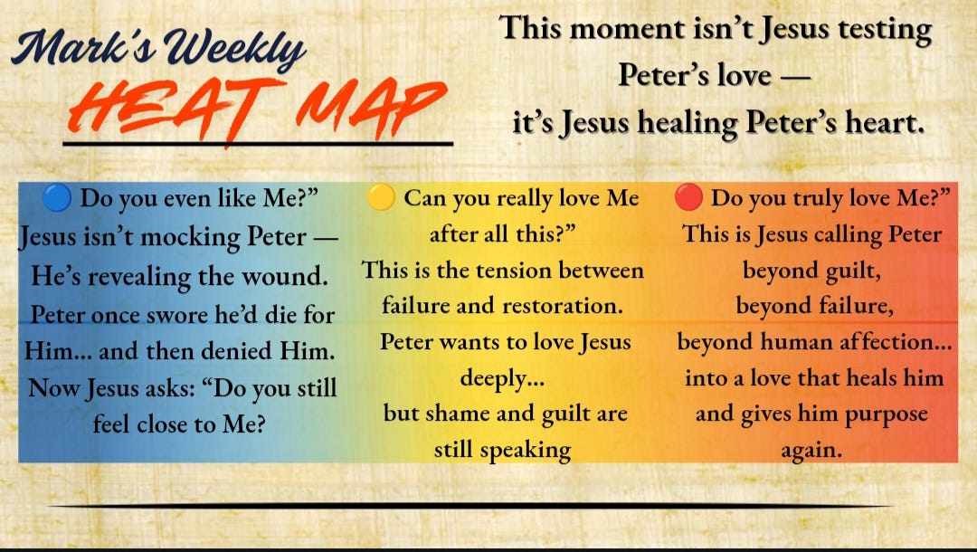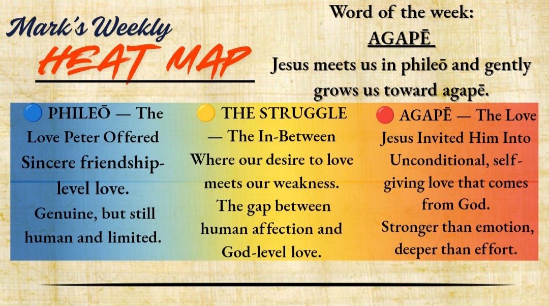 I call it Mark’s Weekly Heat Map, and it’s a simple way to look at a biblical word and actually feel what’s happening in the story — not just read it.